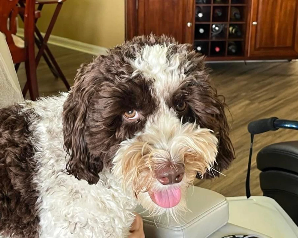 Nellie is now a year old, my best “friend” and makes us laugh many times a day. After mike’s medical issues she has made it her job to read when either of us need a little “pick me up”. She comes and lays in our lap and provides lots of kisses😹😹. We have always had labs but from this point forward S/C Australian Labradoodles will be our choice. No shedding, no matting and smaller size is perfect for our age.