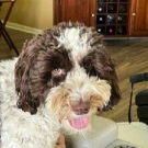Nellie is now a year old, my best “friend” and makes us laugh many times a day. After mike’s medical issues she has made it her job to read when either of us need a little “pick me up”. She comes and lays in our lap and provides lots of kisses😹😹. We have always had labs but from this point forward S/C Australian Labradoodles will be our choice. No shedding, no matting and smaller size is perfect for our age.